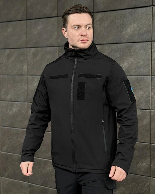 Куртка Pobedov Shadow SoftShell + ПОДАРУНОК прапор України чорна розмір XL