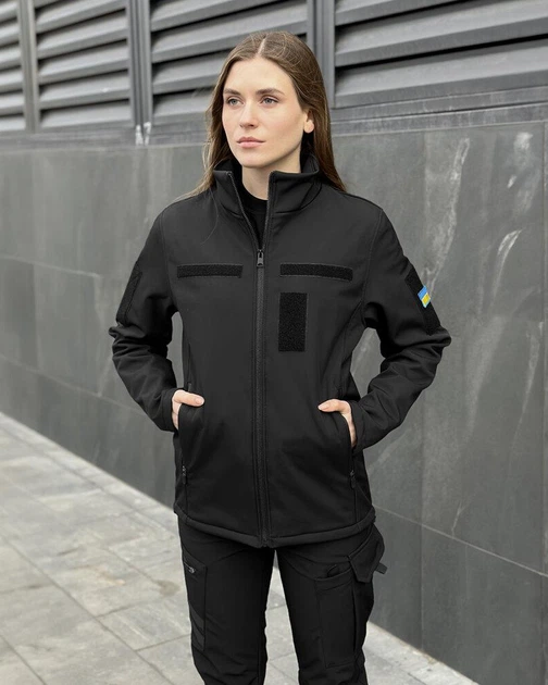 Жіноча Куртка Pobedov Shadow Soft Shell на мікрофлісі + ПОДАРУНОК шеврон чорна розмір XL