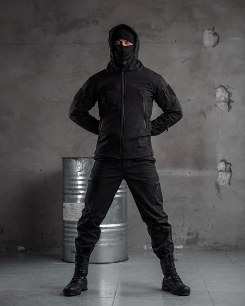 Тактичний костюм Softshell Police Black з липучками під шеврони та кишенями на блискавках XXL