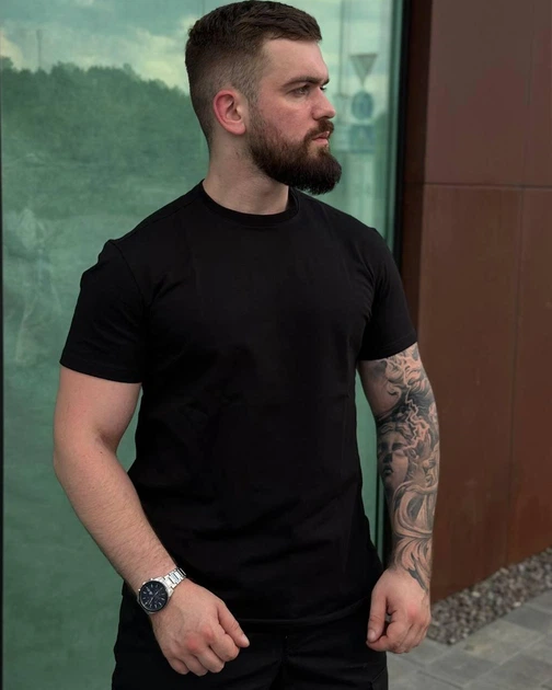Чоловіча Зносостійка Футболка CoolMax з круглою горловиною чорна розмір 4XL