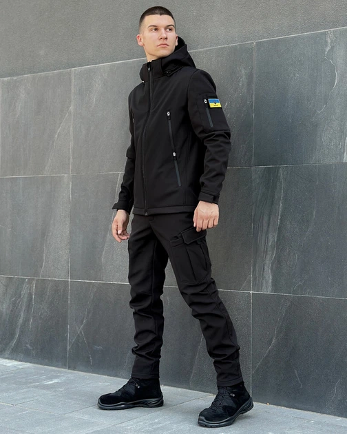 Костюм Pobedov SoftShell Куртка Motive та Штани Static чорний + ПОДАРУНОК Шеврон прапор України розмір XL