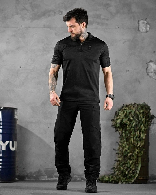 Тактичний чоловічий літній костюм штани+поло 2XL чорний (91608)