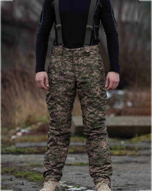 Чоловічі зимові Штани з утеплювачем Thermoloft та підтяжками / Утеплені брюки піксель розмір 3XL
