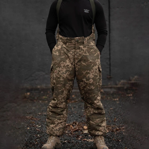 Чоловічі зимові Штани з утеплювачем Thermoloft та підтяжками / Утеплені брюки піксель розмір 3XL