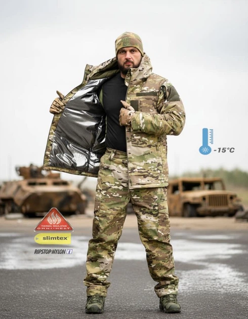 Зимовий тактичний костюм TERICON Мультикам ріп-стоп утеплений OmniHeat Slimtex флісова підкладка XXL