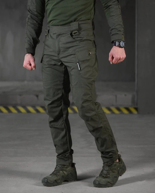Тактичні чоловічі штани Rip-Stop Oliva - анатомічний крій, утилітарні кишені, манжети на хлястиках, для армії та outdoor S