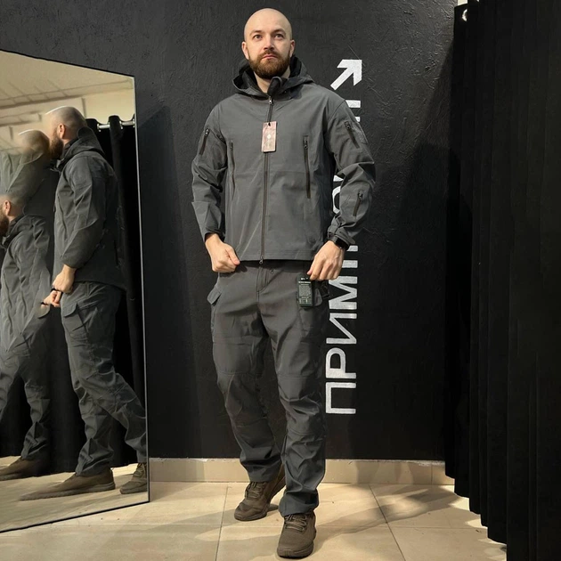 Тактичний полегшений костюм Vanguard Softshell Куртка з капюшоном + Штани сірий розмір XL