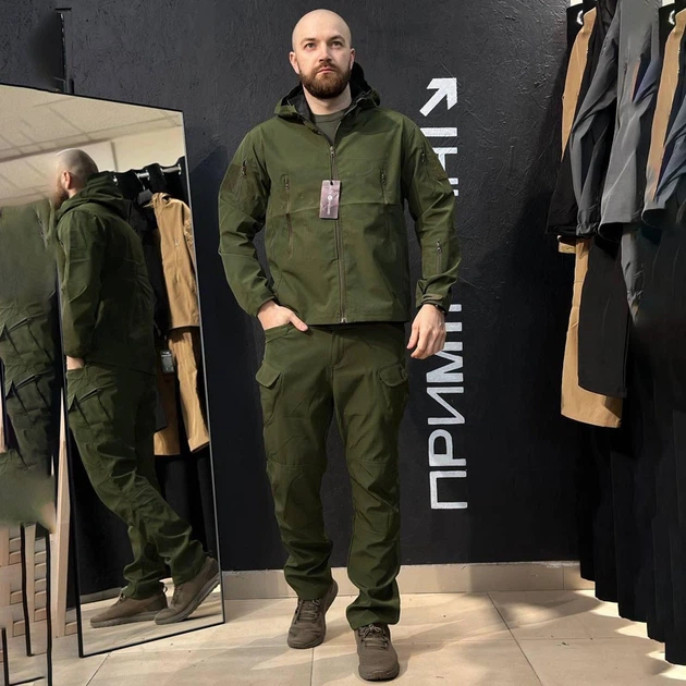 Тактичний полегшений костюм Vanguard Softshell Куртка з капюшоном + Штани олива розмір 4XL