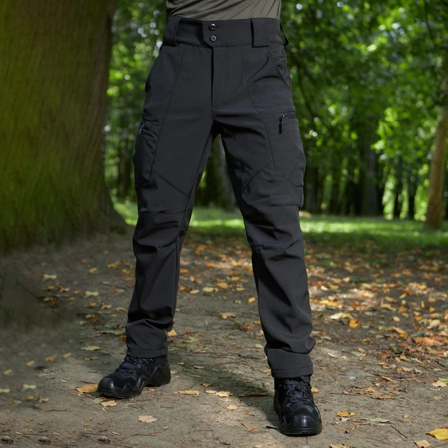 Чоловічі міцні Штани SoftShell на флісі із високою Посадкою / Щільні Брюки чорні розмір XL