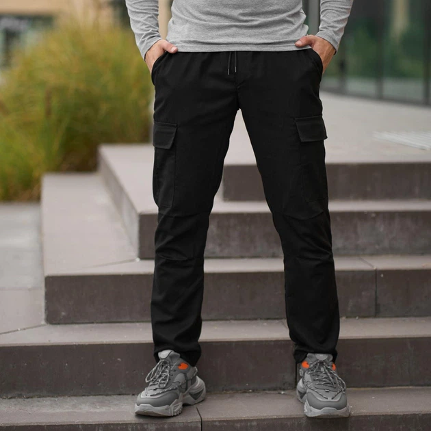 Чоловічі міцні Штани Cloud із функціональними Кишенями / Бавовняні Брюки чорні розмір 2XL