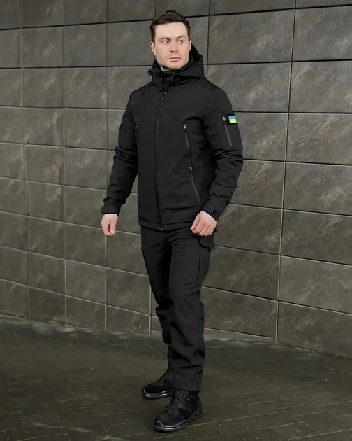 Форма Pobedov Куртка Motive Зима B2 з капюшоном та Штани-Карго Static + ПОДАРУНОК Шеврон прапор України чорна розмір 3XL