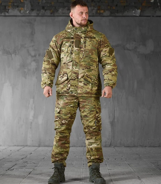 Тактичний комплект зимового військового одягу Han Wild Multicam, убакс з довгим рукавом та налокітниками, штани з наколінник