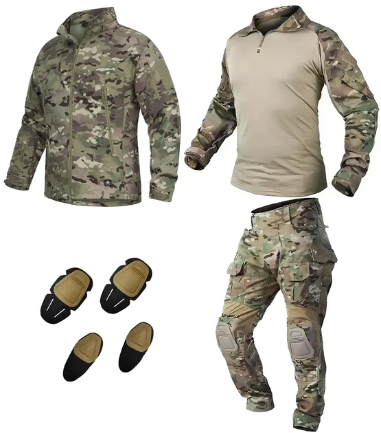 Brutals G3 тактична військова форма Multicam з курткою Shark Softshell еластичними вставками та захисними вставними наколінн