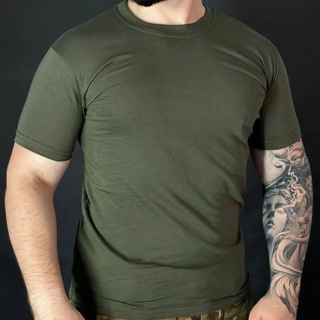 Чоловіча Бавовняна Футболка з круглою горловиною олива розмір 5XL