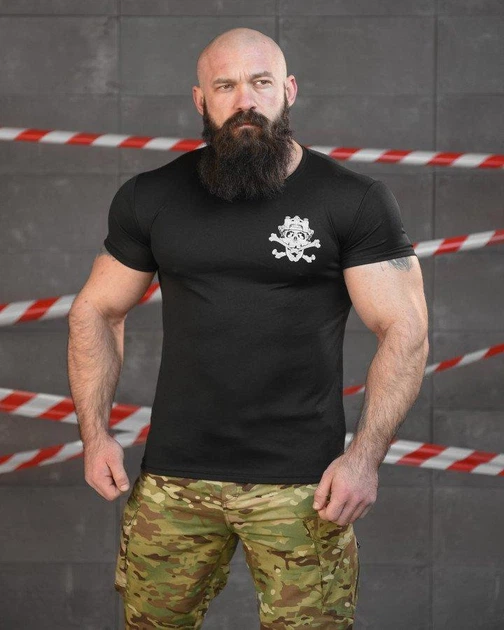 Тактична футболка потоотводящая з принтом 2XL чорна (91166)