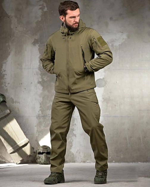 Форма SoftShell на флісі Куртка з капюшоном та Штани олива розмір M