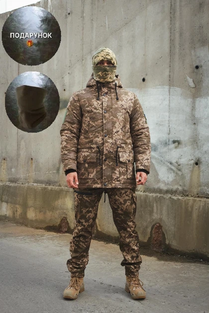 Чоловічий комплект зимовий зносостійкий теплий: Парка зимова піксель + теплі штани Flash піксель /S Бафф хакі у ПОДАРУНОК!