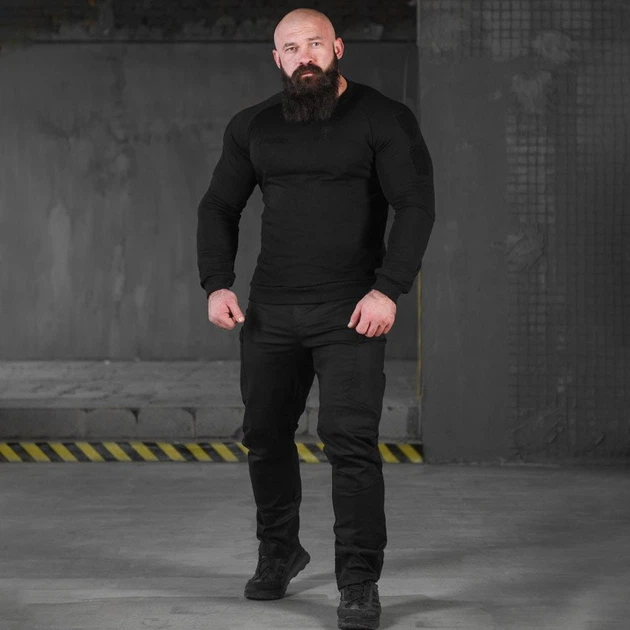 Комплект Поліція Світшот з липучками під шеврони + Штани чорний розмір 2XL