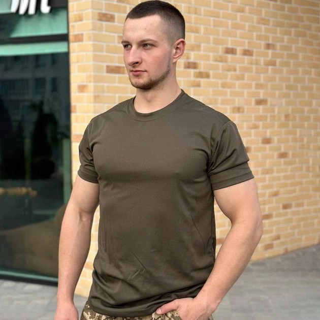 Чоловіча Зносостійка Футболка CoolMax з круглою горловиною хакі розмір XL