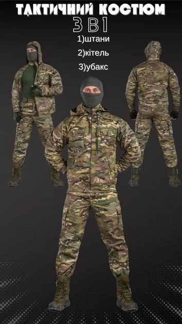 Тактичний костюм 3в1 Colossus Мультикам армійська саржа кітель штани убакс з капюшоном XL