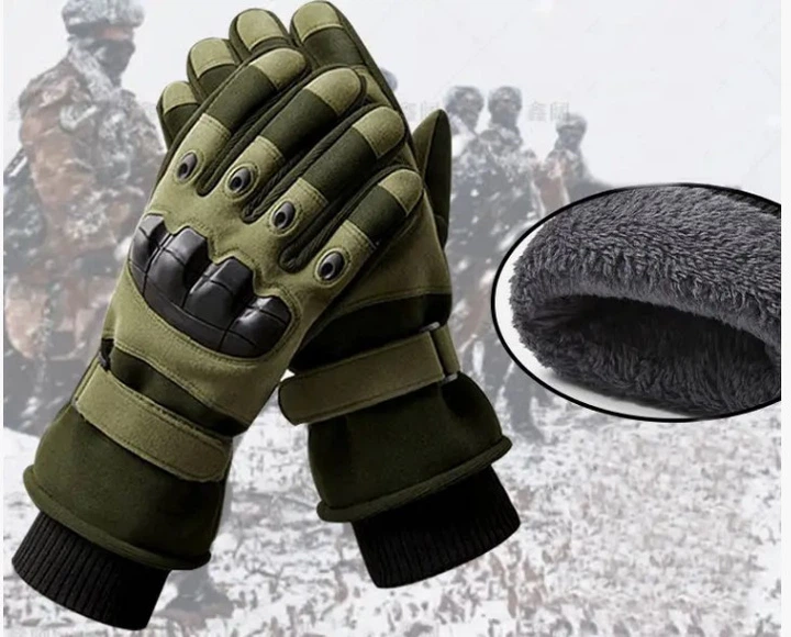 Зимові повнопалі тактичні рукавички на флісі Олива Solve c кісточками KT6010201 - розмір XL