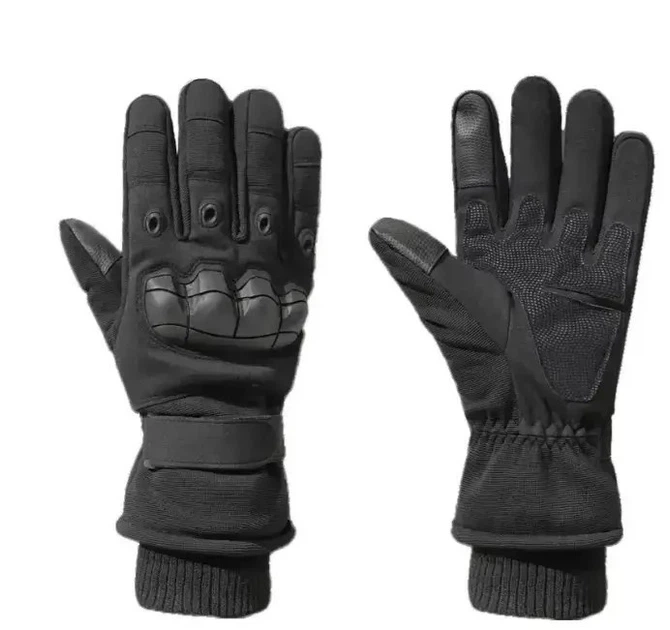 Зимові повнопалі тактичні рукавички на флісі Чорні Solve c кісточками KT6010202 - розмір XL