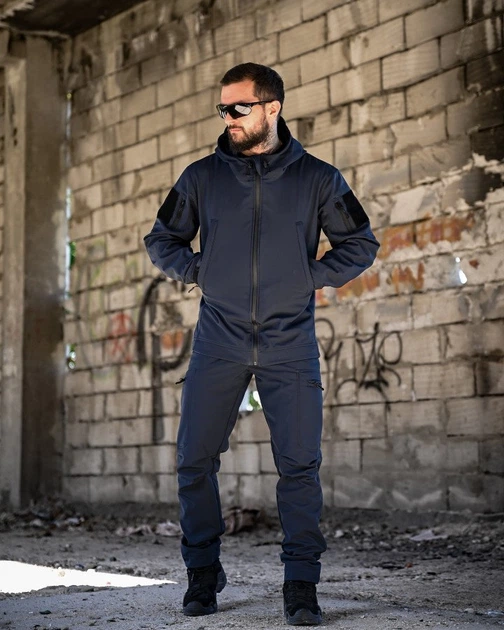 Демісезонний тактичний костюм Softshell Satelit синій водовідштовхувальний манжети на липучках XL