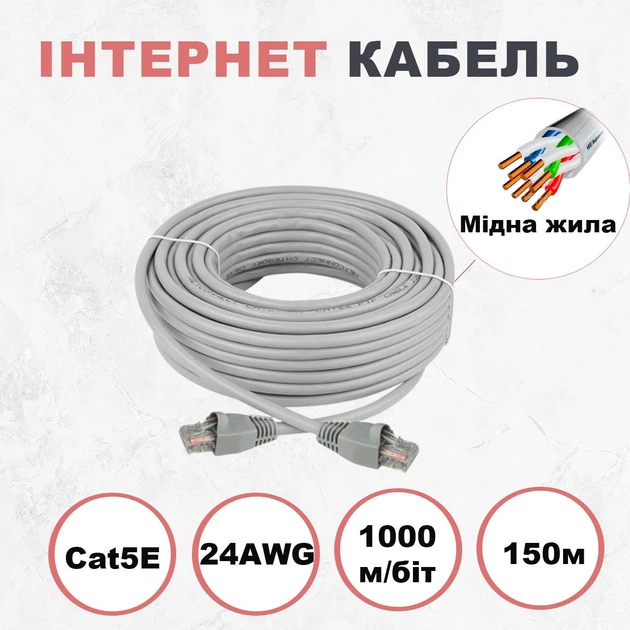 Патч Корд LAN Кабель для роутера 130м CAT5e UTP RJ45 Універсальний ЗОВНІШНІЙ ВУЛИЧНИЙ (031843)
