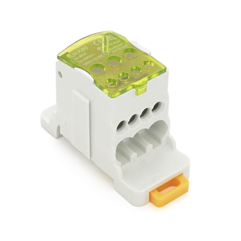 Паралельний розгалужувач-спліттер дротів UKK80, 6 виходів (латунь) 2 - 2,5*16мм2 *4-2,5-6мм2 *1-6-16мм2, AC690V, 80А, 70,8*4