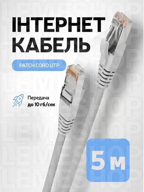 Патч-корд мережний кабель Інтернет gigabit ethernet Cat 6 RJ45 Lan Cable 5 м Kayfovo LC-6 Білий