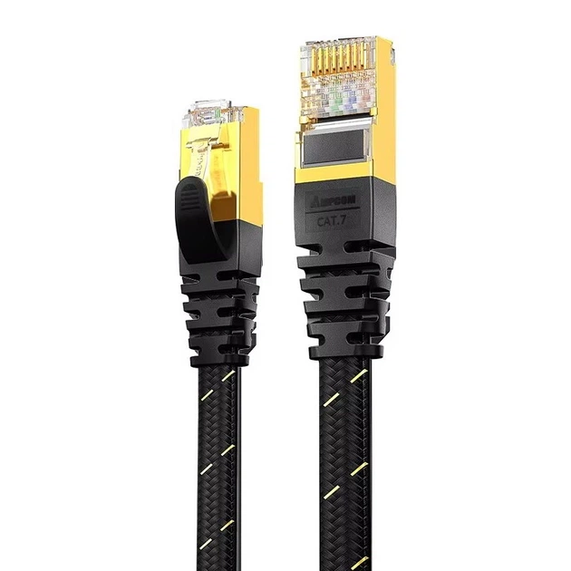 LAN кабель для інтернет патч-корд RJ45 Ampcom CAT7 STP 10Gbps з обплетенням Neylon Black, 1м (48758)