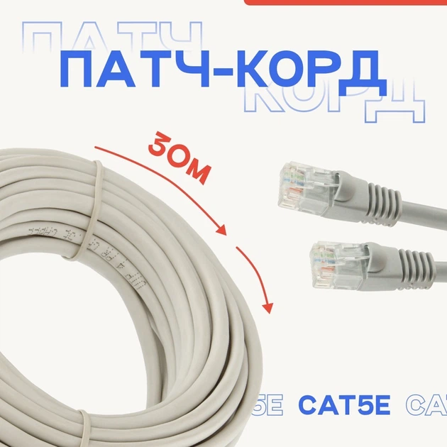 Комутаційний кабель патч-корд UTP для інтернету LAN 30m Синій (0071unk)