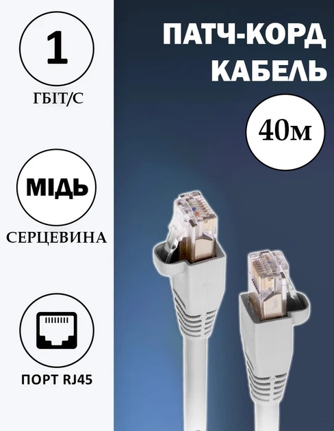 Кабель для інтернету мідний патч-корд Ethernet - Ethernet RJ-45 - RJ-45 4 пари 8 жил 1Гб/с 40м (87153/40unk)