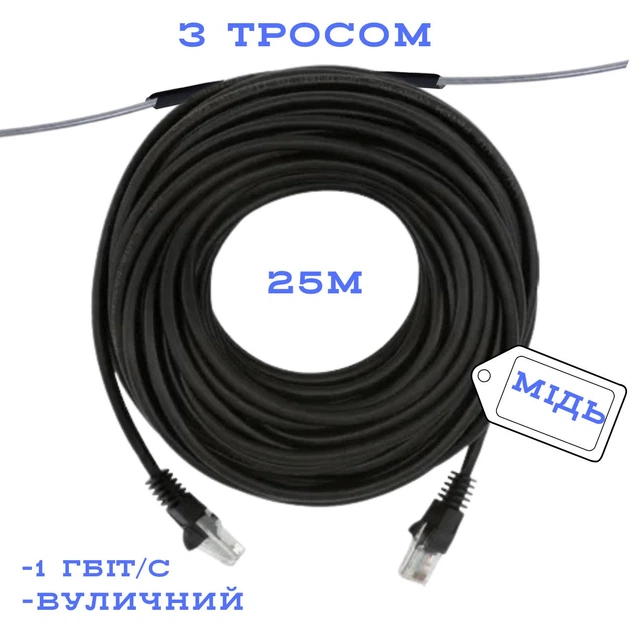 Зовнішній патч-корд з тросом CAT5e CU мідь UTP 25 м неекранований чорний (88283м)