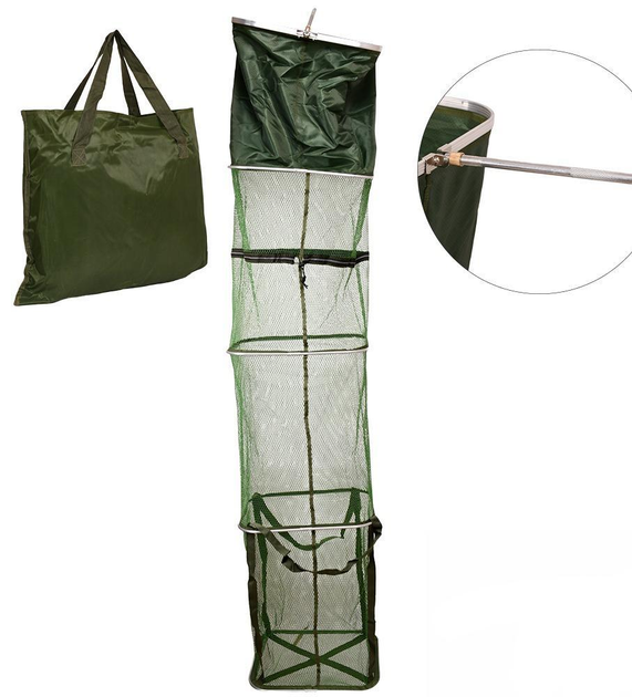 Підсак для риболовлі короповий посилений 80/80 складаний сітка плетена волосінь ручка телескопічна 210 см алюміній з чохлом
