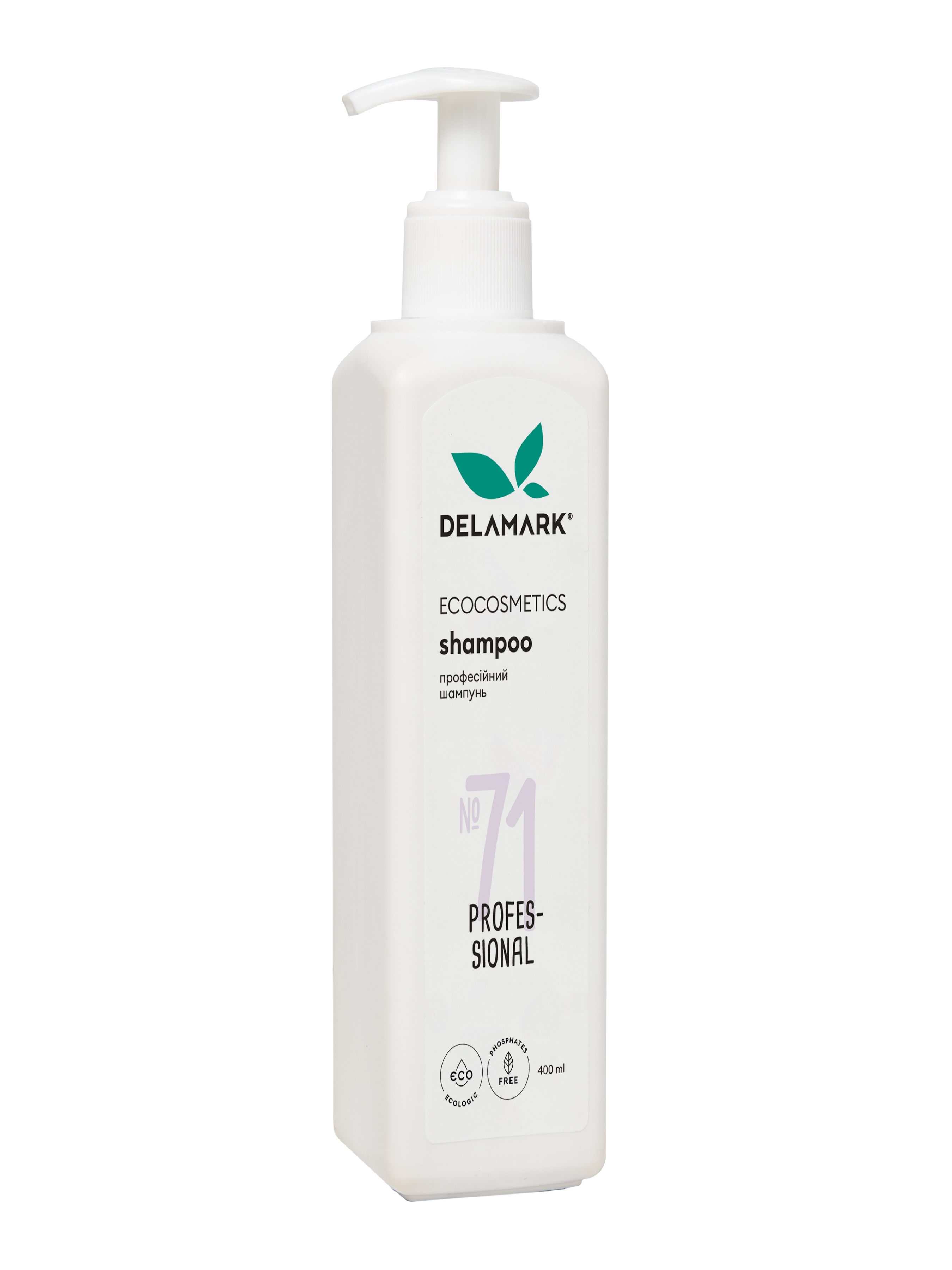 Догляд для волосся. Догляд для волосся DeLaMark. Безсульфатний шампунь з екосертифікатом для нормального волосся. Дбайливо очищає волосся й дає змогу його мити так часто, як це необхідно. Не містить агресивних ПАР, тому не пересушує шкіру голови та запобігає появі лупи. Має помірне піноутворення, швидко змивається й економно витрачається. Додаткові характеристики У складі шампуню є