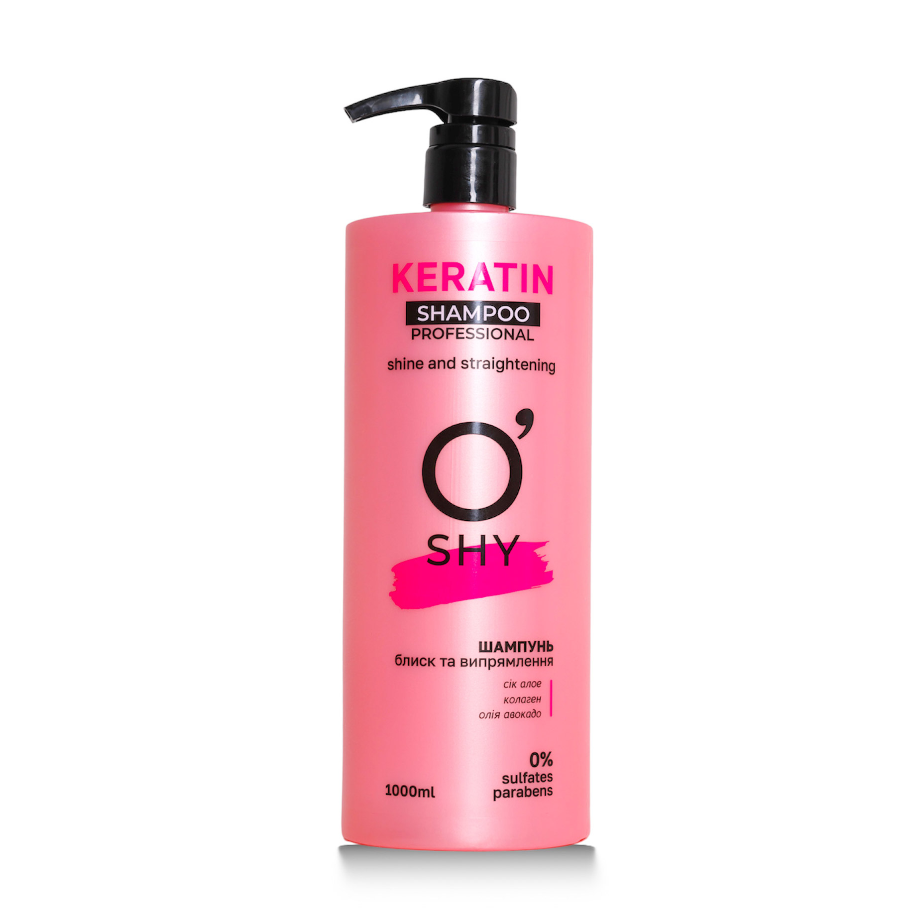 Безсульфатний шампунь для волосся O'shy Keratin Shampoo Professional Блиск та випрямлення, 1 л