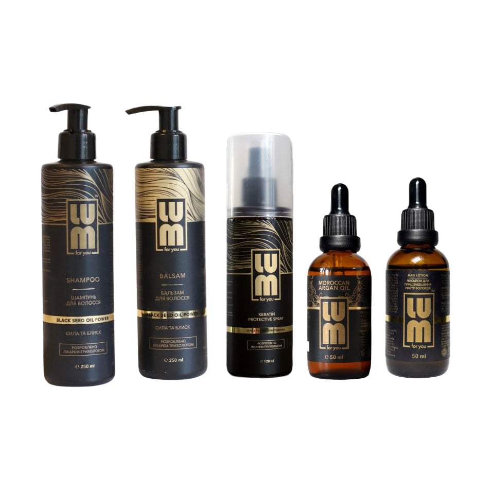 Набір LUM Формула сили: очищення + живлення + стимуляція (лосьйон, 50 мл + шампунь, 250 мл + бальзам, 250 мл + арганова олія