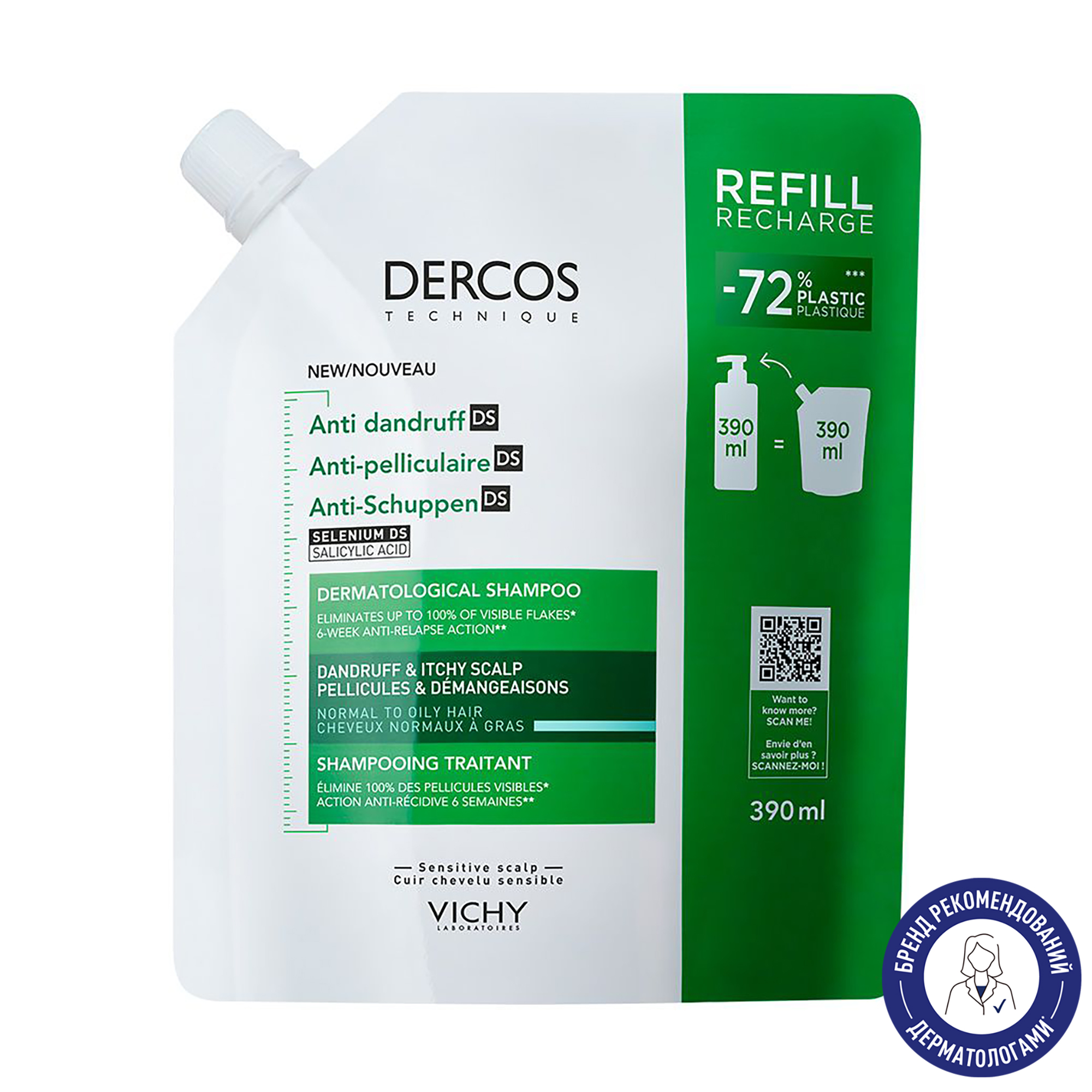 Дерматологічний шампунь проти лупи Vichy Dercos Anti-Pelliculaire Anti-Dandruff Shampooing для нормального, жирного волосся