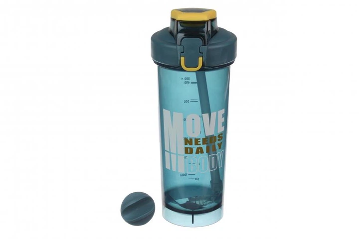 Спортивний шейкер 800 мл з трубочкою, пластиковий, синій з жовтим