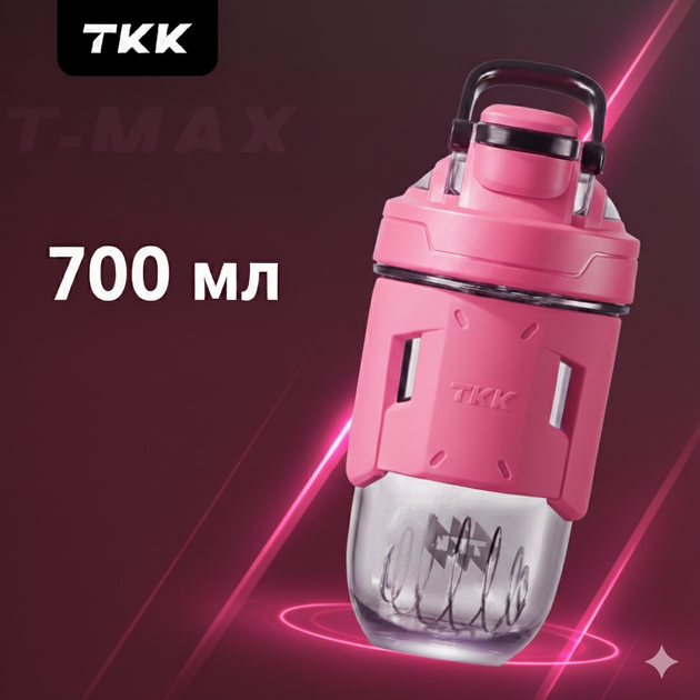 Шейкер спортивний тритановий 700 мл з мірною шкалою та кулькою для коктейлів рожевий