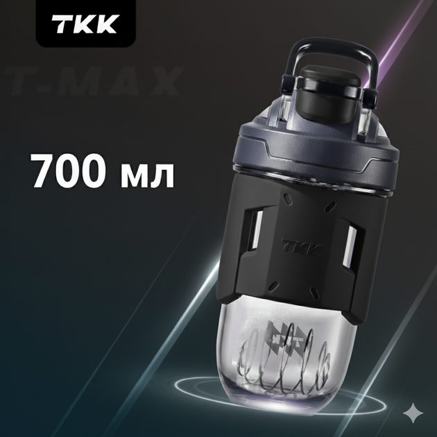 Шейкер спортивний тритановий 700 мл з мірною шкалою та кулькою для коктейлів чорний