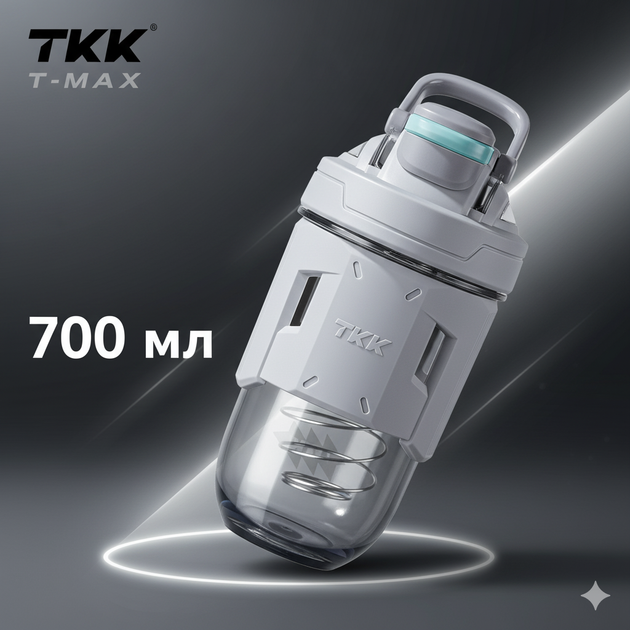 Шейкер спортивний тритановий 700 мл з мірною шкалою та кулькою для коктейлів світло - сірий