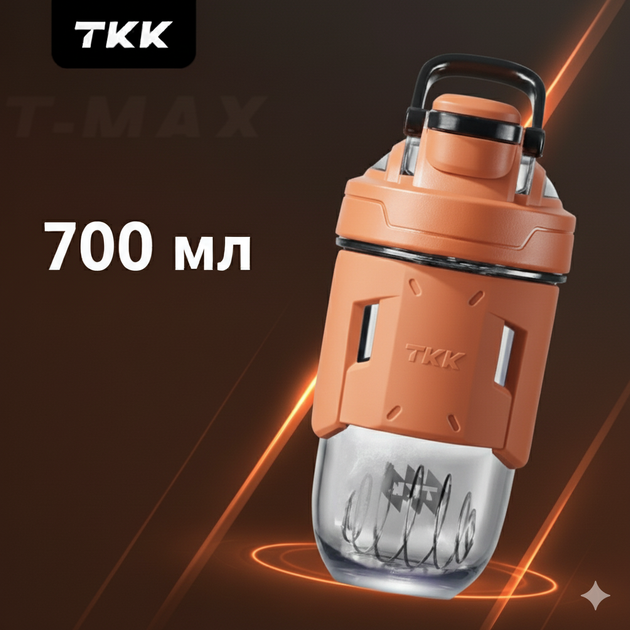 Шейкер спортивний тритановий 700 мл з мірною шкалою та кулькою для коктейлів поморанчевий