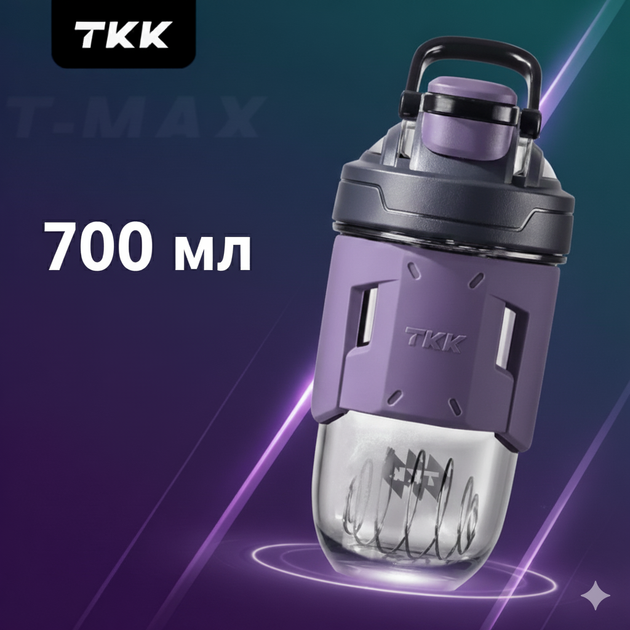 Шейкер спортивний тритановий 700 мл з мірною шкалою та кулькою для коктейлів фіолетовий