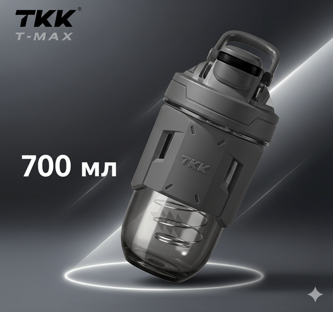 Шейкер спортивний тритановий 700 мл з мірною шкалою та кулькою для коктейлів сірий