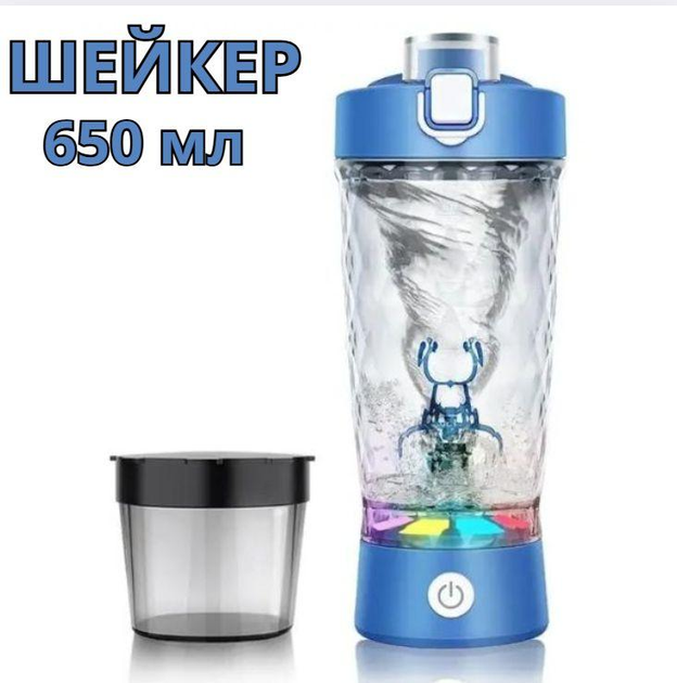 Електричний шейкер 650 мл із LED-підсвіткою та контейнером для суміші, синій