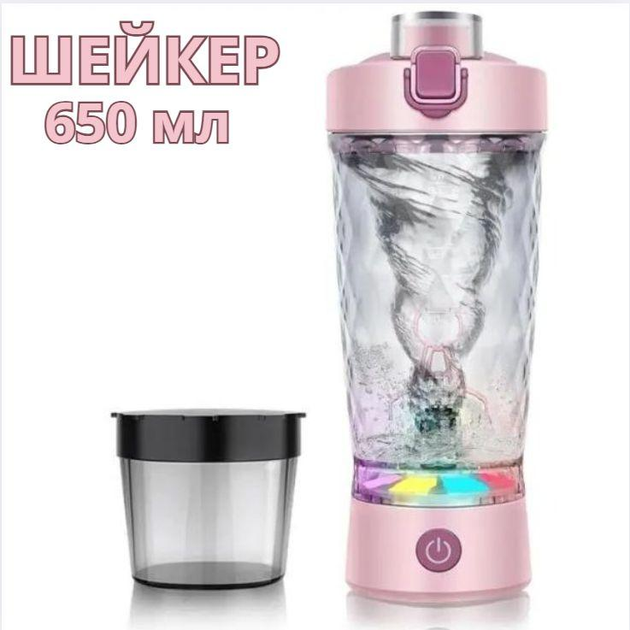 Електричний шейкер 650 мл із LED-підсвіткою та контейнером для суміші, рожевий