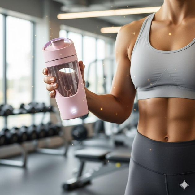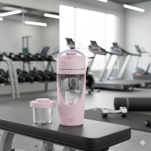 Електричний шейкер 700 мл для коктейлів та смузі рожевий
