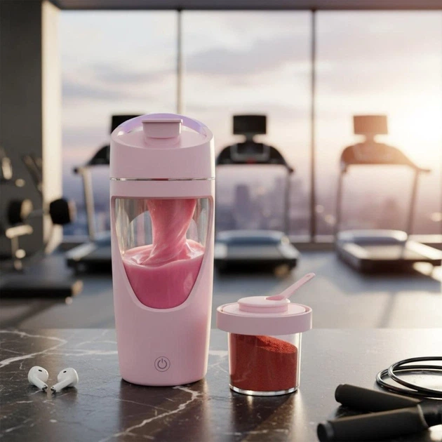 Електричний шейкер 700 мл для коктейлів та смузі рожевий